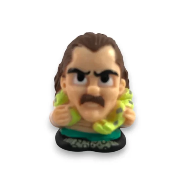 Bring a classic legend to your collection with this WWE TeenyMates – Jake “The Snake” Roberts mini figure! Featuring Jake’s signature mustache, long hair, green tights, and of course, his iconic snake draped around his shoulders, this figure perfectly captures the aura of one of WWE’s most infamous superstars.
